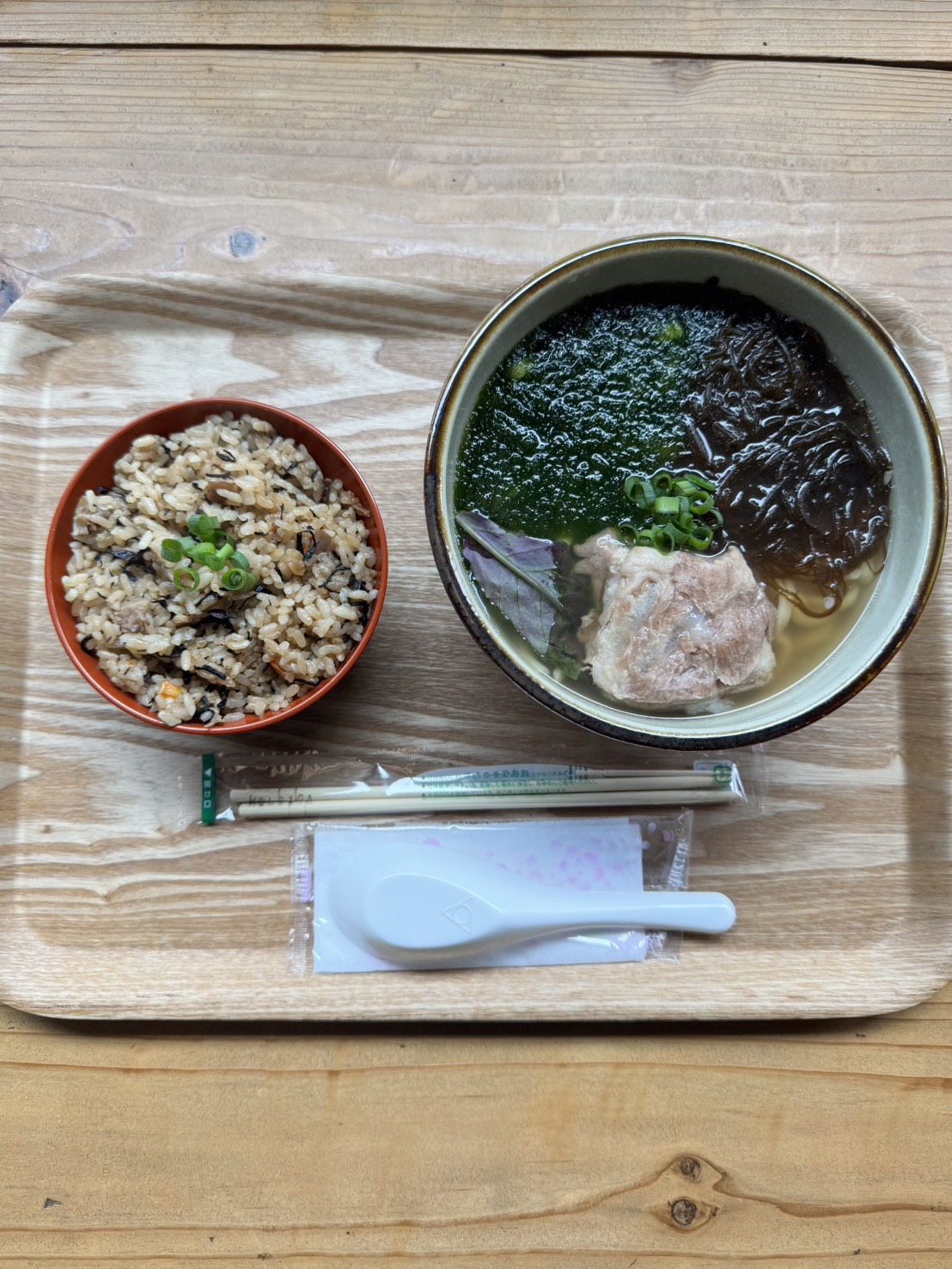 アーサ、もずくと海産出汁の波を島野菜に乗った塩軟⾻ソーキが on the wave。沖縄の海と陸の美味しいがこの⼀杯に詰まってますよ。