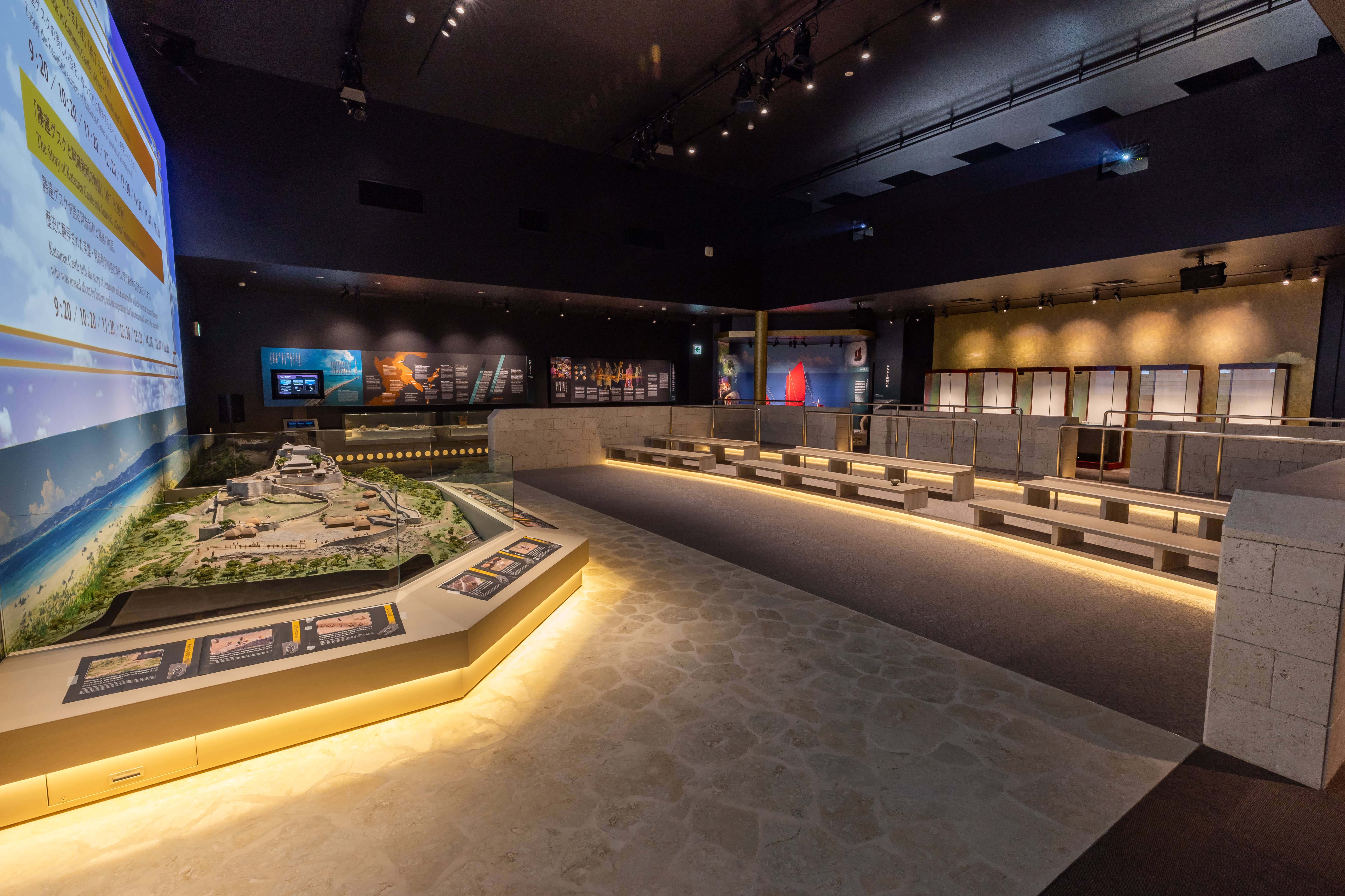 那覇空港から車で約60分(沖縄自動車道利用) ※路線バスご利用の際 └那覇空港→那覇バスターミナル→勝連城跡前(沖縄バス52番系統与勝線屋慶名バスターミナル行) ・駐車場あり(150台) |