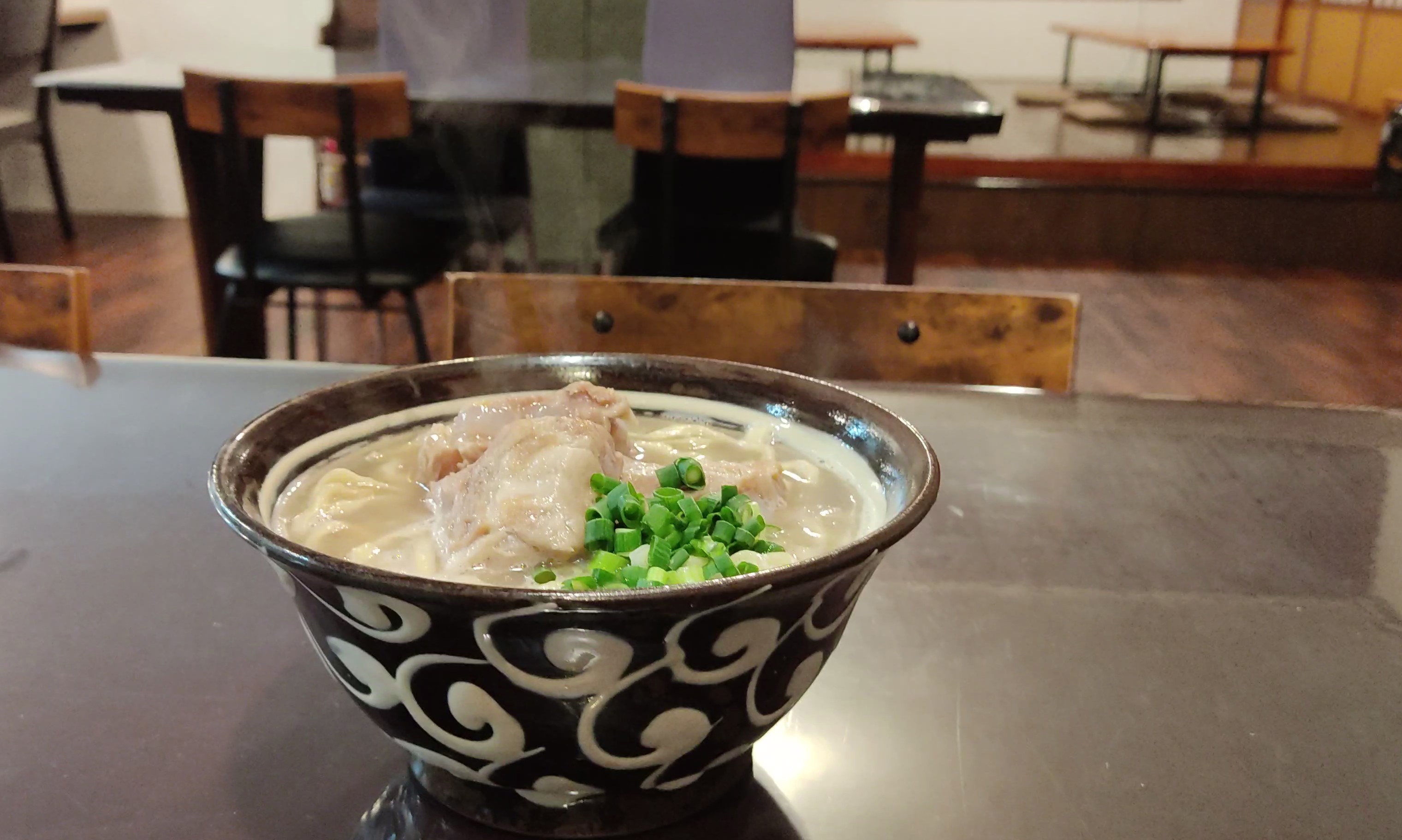 沖縄そば専門店です。新鮮な沖縄県産の豚骨を8時間かけて作っただしと国産の鰹節、日高昆布からとっただしをあわせたスープです。